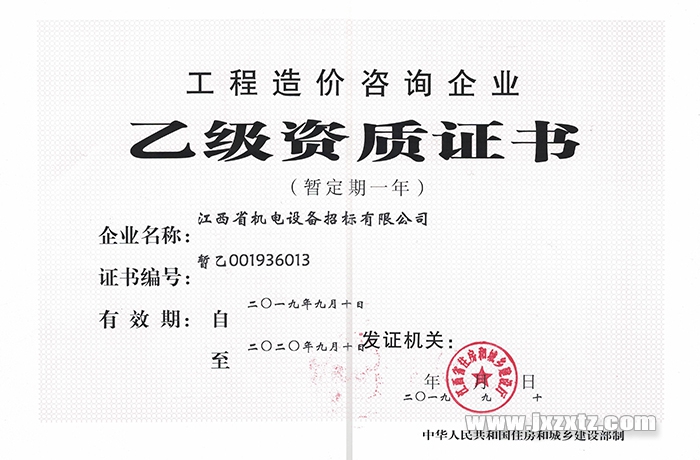 工程咨询单位甲级资格证书(机械、建筑专业)